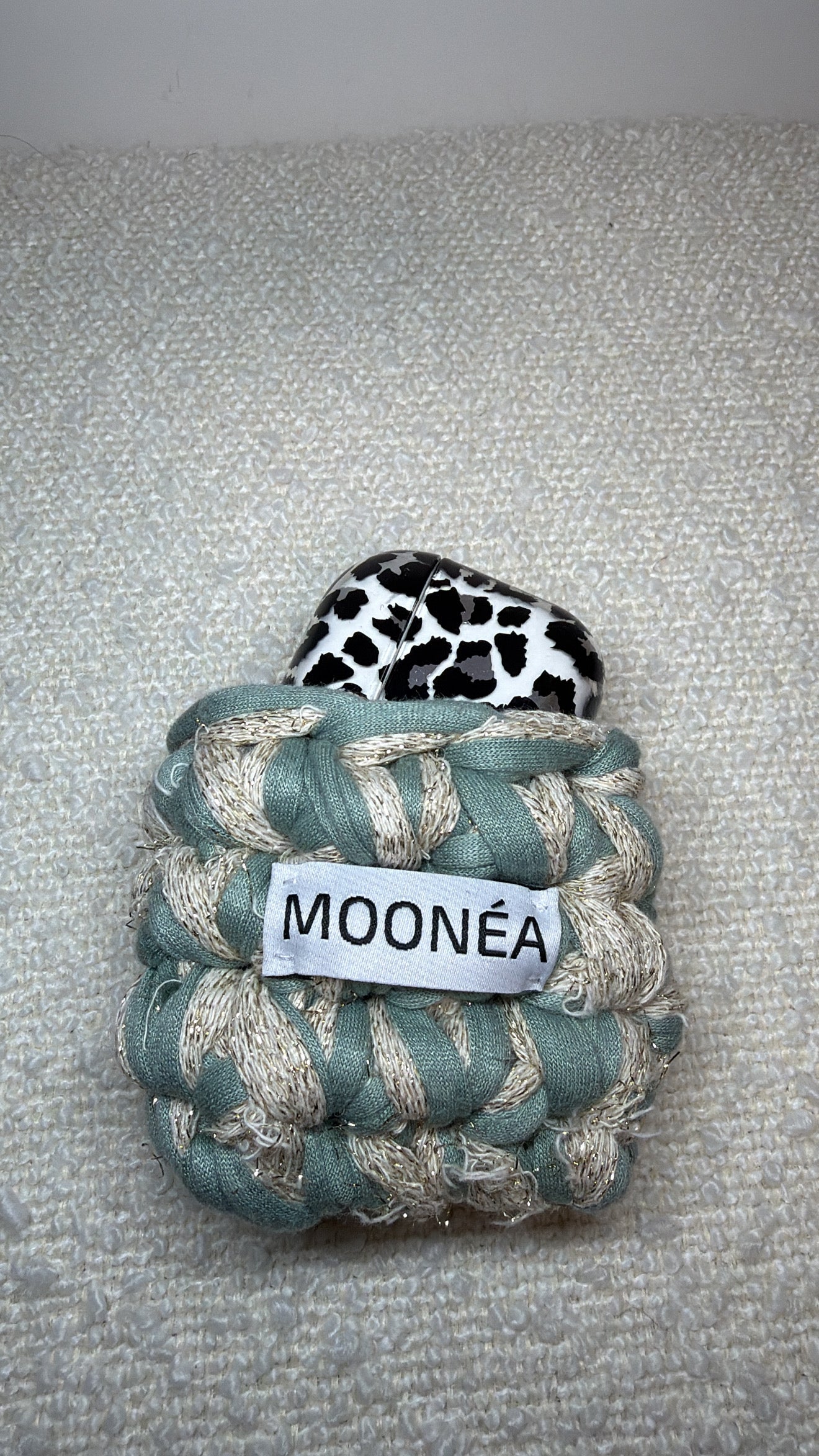Pochette écouteurs - Beige paillettes & vert d'eau