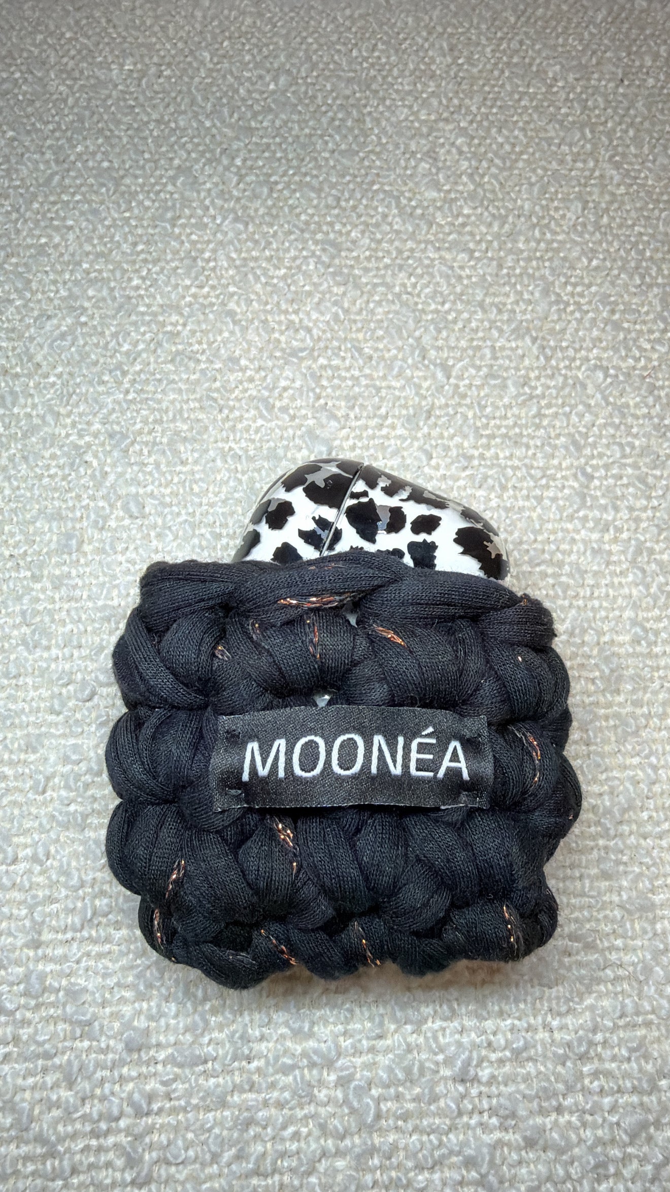 Pochette écouteurs - Noire & paillettes bronze
